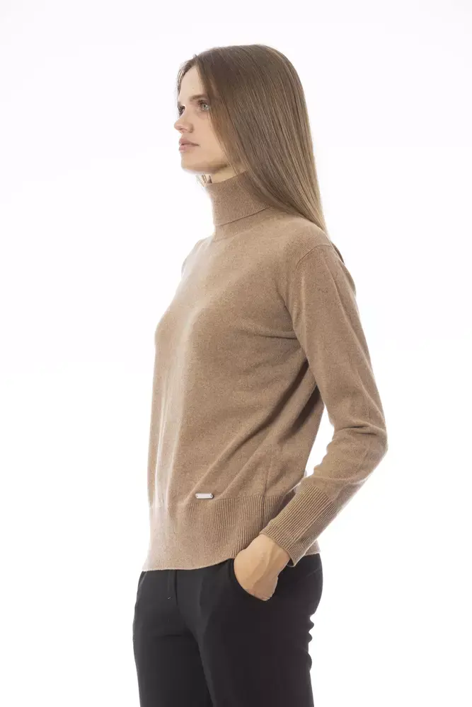 Baldinini Trend Chic Beige Wool-Cashmere Turtleneck Sweater